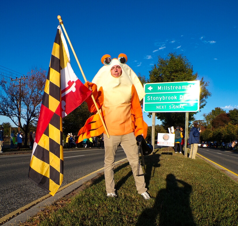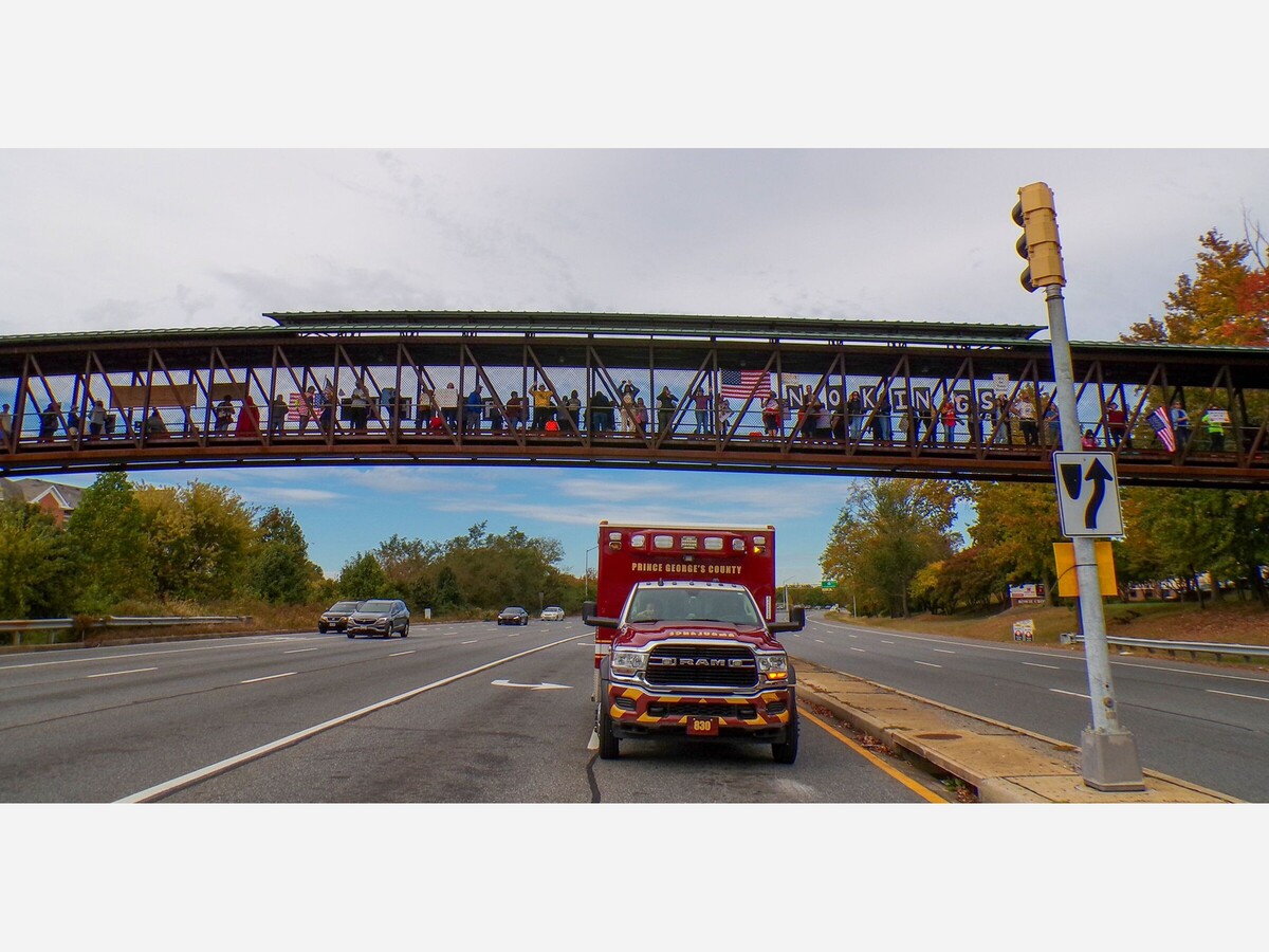 The line of participants at the honk and wave-style protest stretched to over a quarter of a mile on both sides of Annapolis Road. It was one of three No Kings protests in Bowie, attracting 2,000-2,500 people at the library and 300 at two other protests in the city, according to organizers.