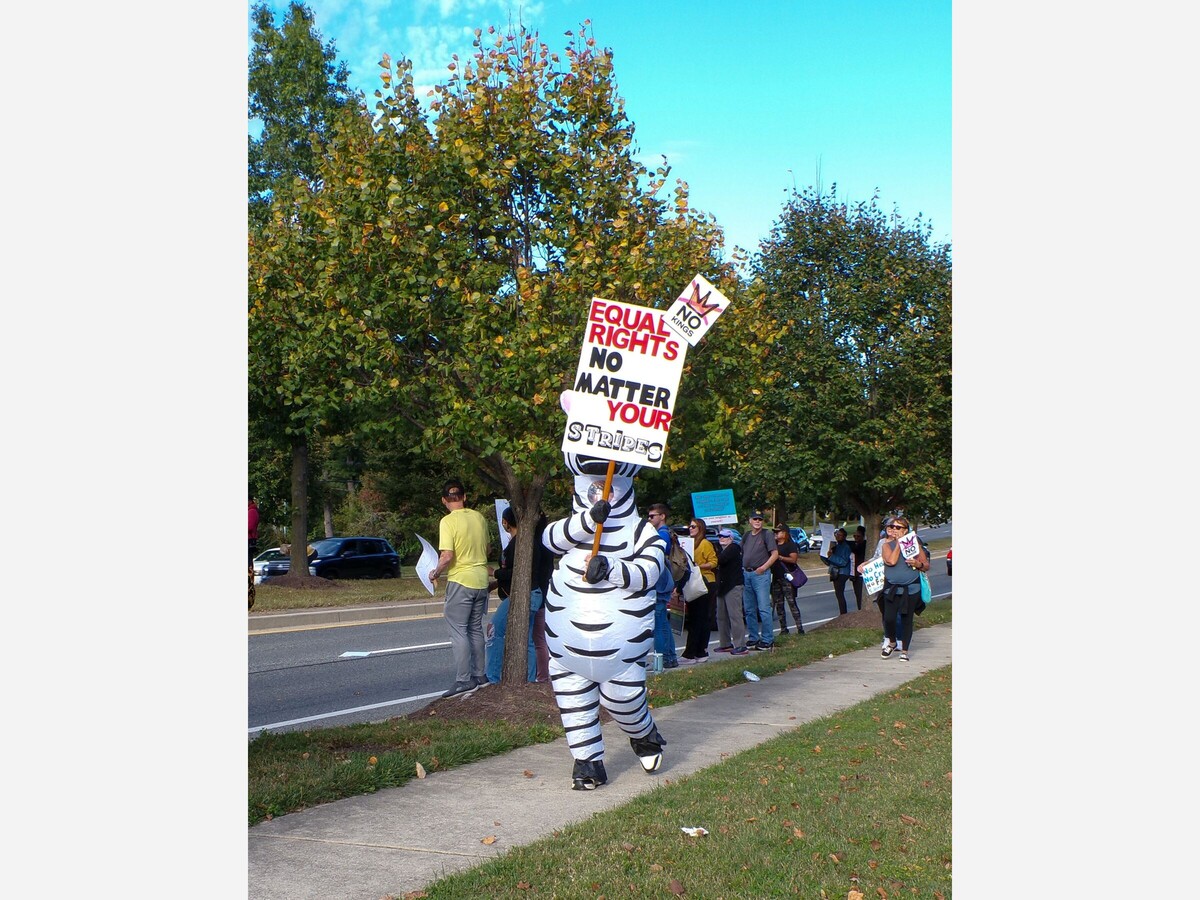 BOWIE, Md. - Thousands of people of all ages gathered in front of the Bowie Branch Library for Saturday’s No Kings protest, equipped with signs, music, megaphones and even inflatable costumes.