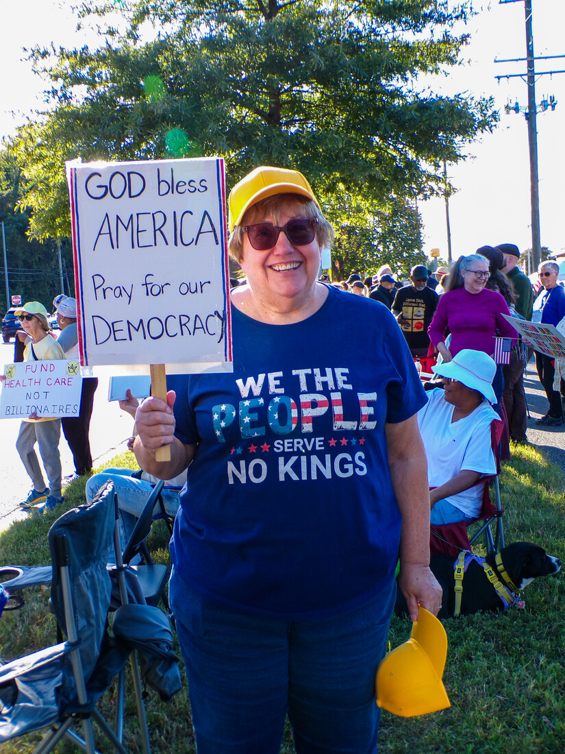 “This is government of the people, by the people, and for the people, showing itself on the sidewalks,” said Bowie No Kings organizer Liz Enagonio.